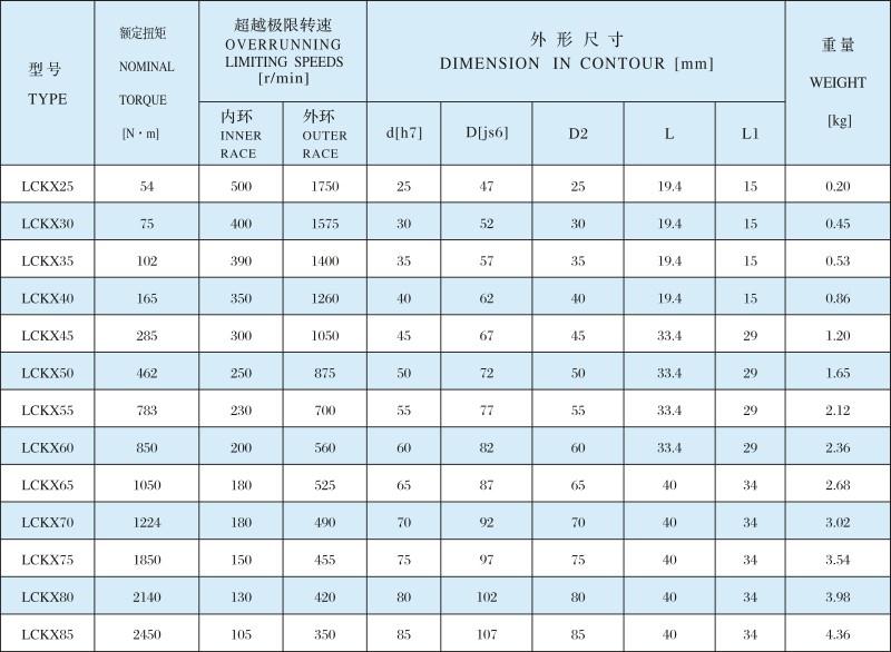 產(chǎn)品描述:LCKX系列為單保持架無內(nèi)外環(huán)楔塊式超越離合器