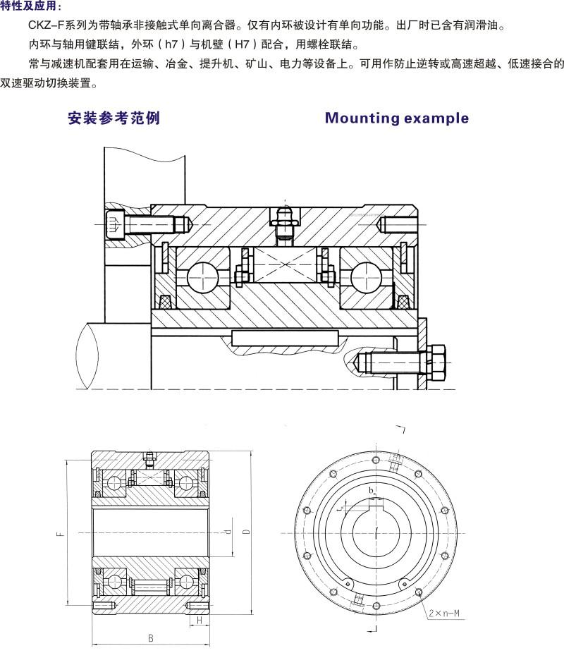 產(chǎn)品描述:CKZ-F系列為帶軸承非接觸式單向離合器。