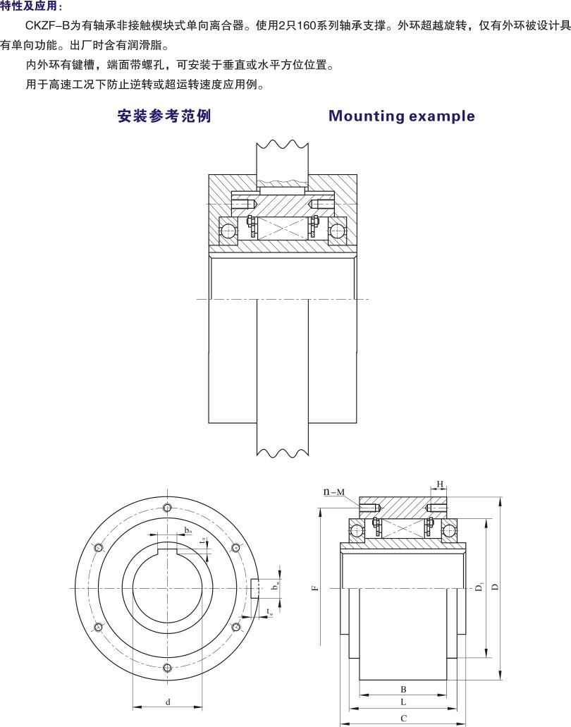 產(chǎn)品描述:CKZF-B為有軸承非接觸楔塊式單向離合器。