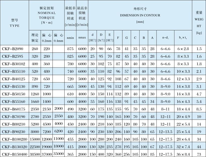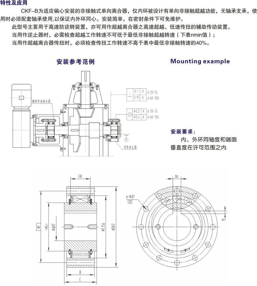 產(chǎn)品描述:CKF-B為適應偏心安裝的非接觸楔塊式單向離合器。
