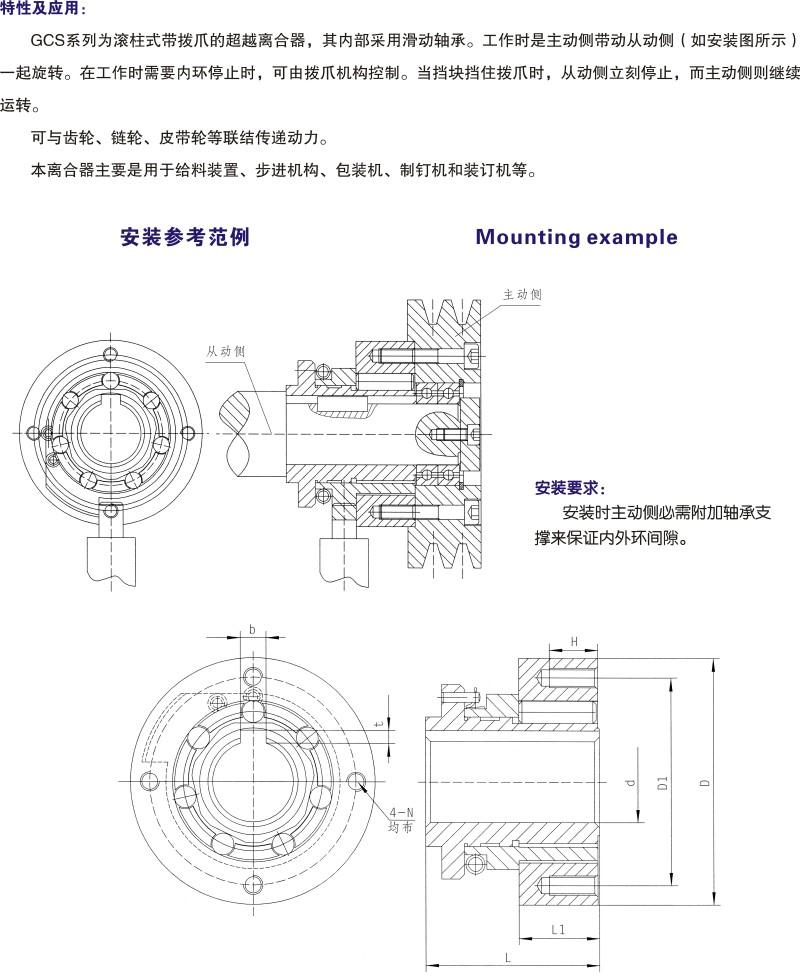 產(chǎn)品描述:GCS系列為滾柱式帶撥爪的超越離合器,其內(nèi)部采用滑動軸承。
